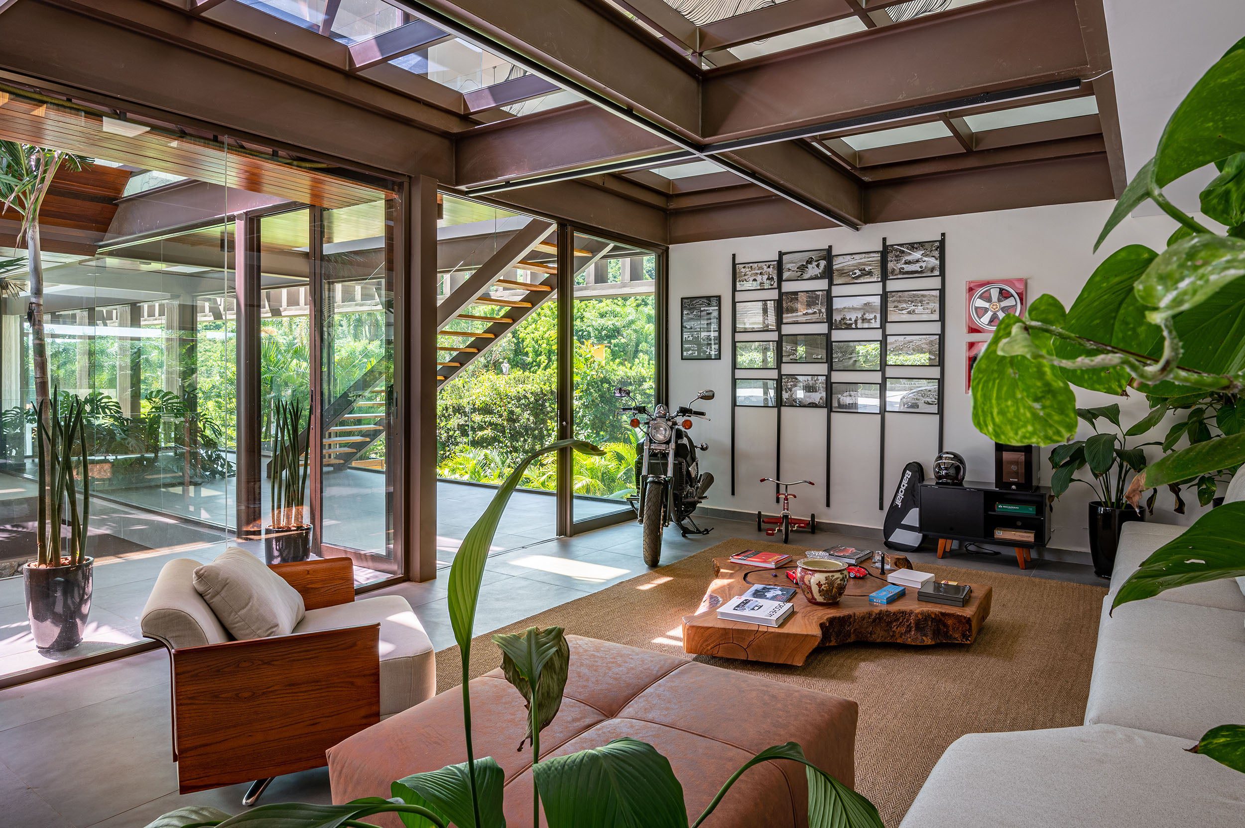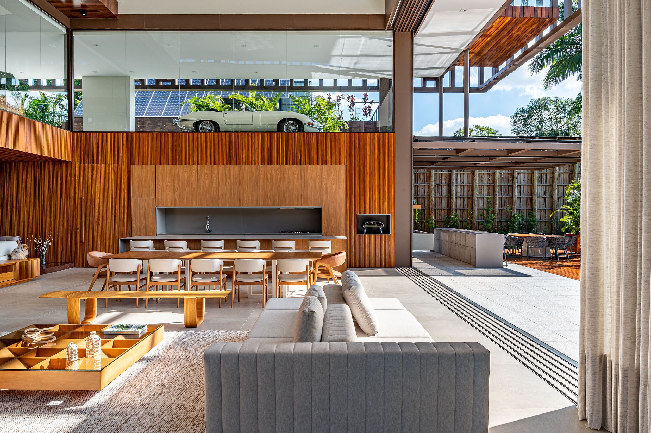 O projeto uniu conforto, privacidade, natureza e a coleção de carros em uma única proposta, refletindo o estilo de vida dos moradores.